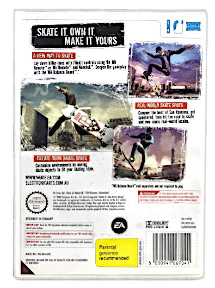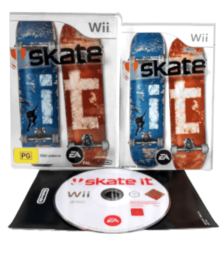 Excellent Condition & 100% Complete with Contents: SKATE IT for NINTENDO Wii. This preowned game is a tidy and complete collector’s item, with case, cover, manual / booklet, and game disc.