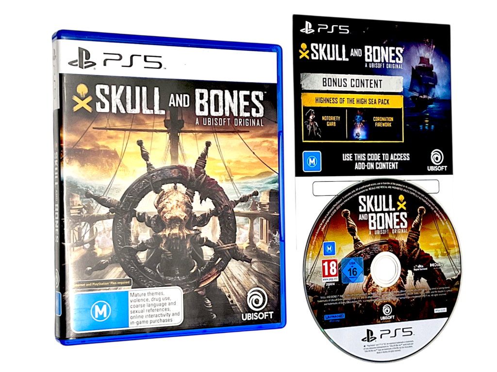 Skull and Bones Special Edition for SONY PlayStation 5 / PS5. Pre-owned but in as-new condition and complete with case cover, promo card, and game disc. We have no way of checking whether the paper voucher code is still valid, but this was promotional only and not required for gameplay or completion. The full Skull and Bones game is included on the game disc.