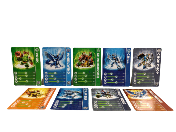 BULK LOT of Official Skylanders Collector’s Cards. These cards were released with each of the corresponding Skylanders Playing Figurines, and are sought after to complete Skylanders Sets (match the card with the character). These preowned authentic Skylanders Collectors Cards are each in excellent condition.