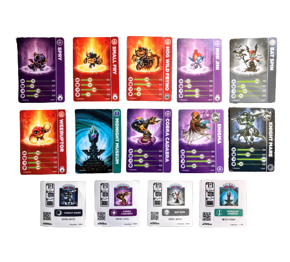 Skylanders COLLECTOR’S CARDS + STICKERS – some of these the Official Collector’s Cards for rare Skylanders. Each of these preowned Skylanders Collector’s Cards and Stickers is in good condition as pictured: