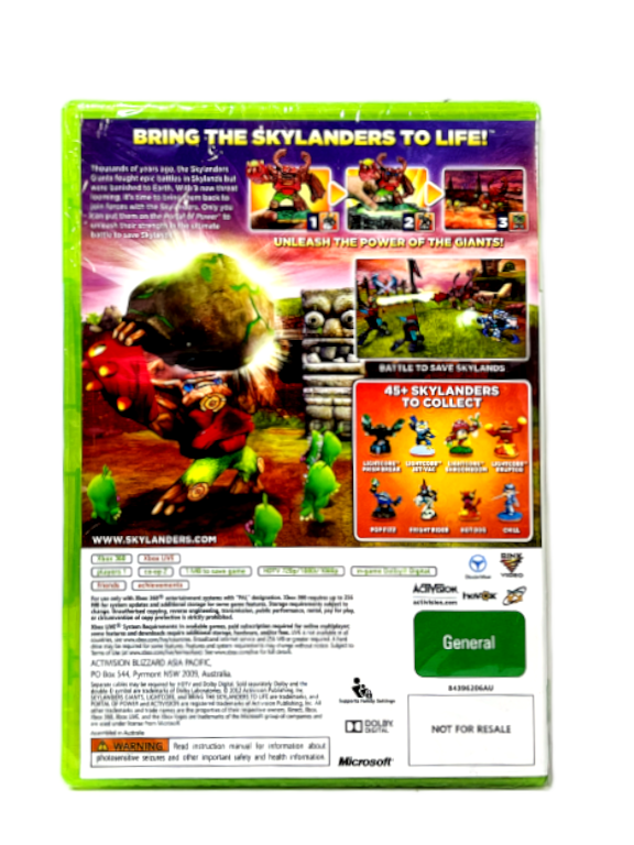 RARE FIND: BRAND NEW PLASTIC SEALED XBOX 360 GAME: SKYLANDERS GIANTS the game for Xbox 360. AUTHENTIC NEW SEALED XBOX 360 GAME. SUITABLE AS A CHRISTMAS GIFT.