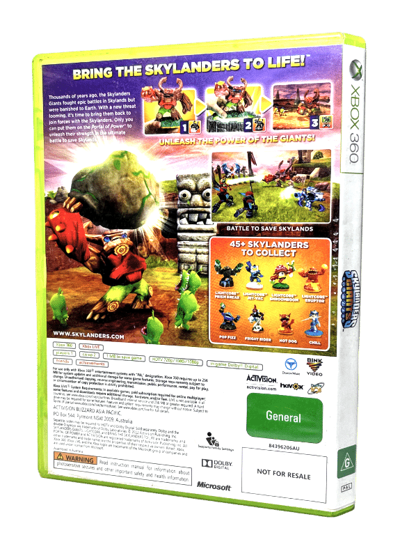 Excellent condition & 100% complete with contents: SKYLANDERS GIANTS for XBox 360. This preowned game comes complete with case + cover + manual / booklet (each in Mint Condition) + game disc.