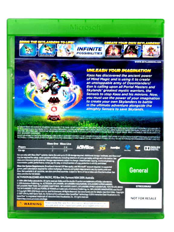 Embark on an Epic New Adventure Use the Imaginite Creation Crystals to Create Your Own Skylanders Sensei Skylanders are the Ultimate Masters of the Almighty Sky-Chi Powers Battle to Save Skylands with the Sensei and Imaginator Skylanders Use 10 Different Battle Class Types to Defeat Kaos and his Minions Play With Friends in COOP and Head-to-Head Racing Conquer All-New Side quests & Mini-games