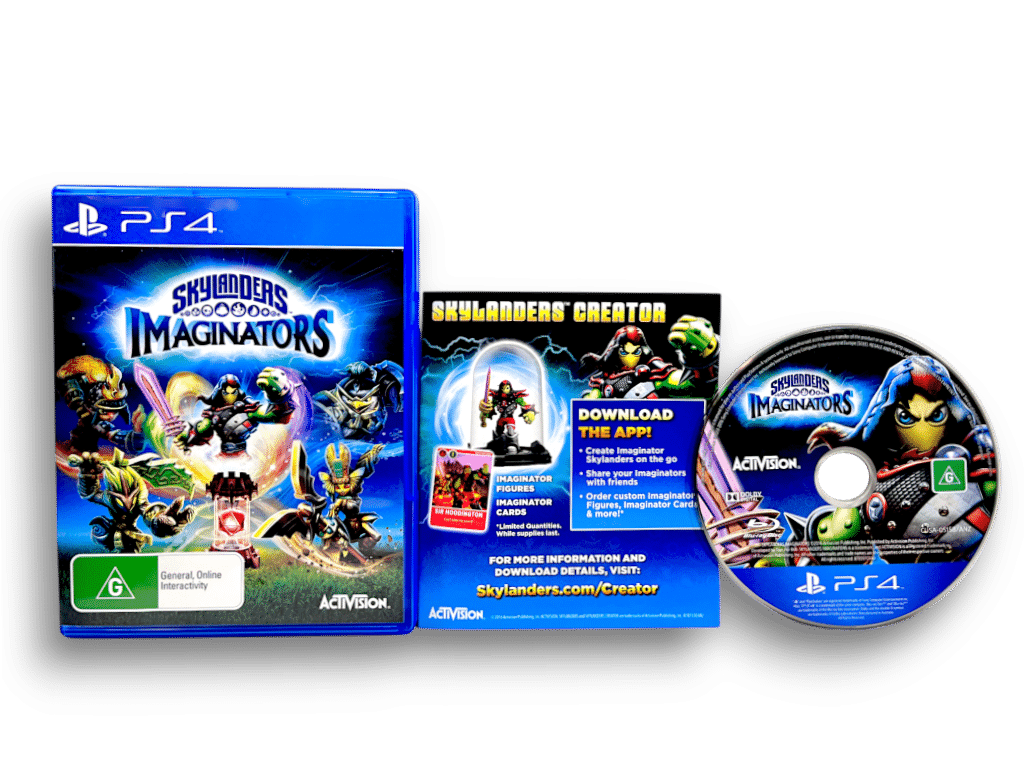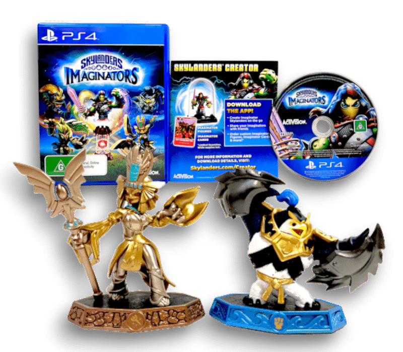 RARE PS4 Game + Figurines: SKYLANDERS IMAGINATORS for SONY PlayStation 4 / PS4. This preowned game is in superb condition and comes complete with case + cover + carded insert + game disc, and also includes two official Skylanders Imaginators Playing Figurines – King Pen + Golden Queen – each in excellent condition also. GAME DISC IS AN OFFICIAL NZ GAME DISC – ENGLISH.