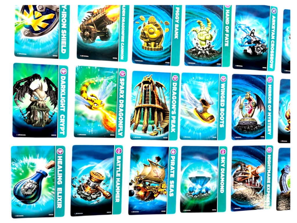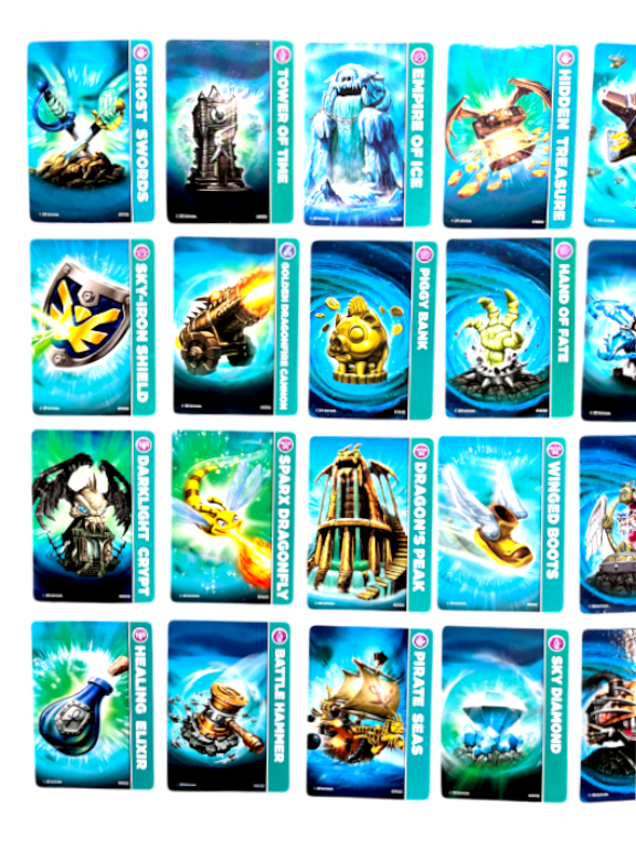 RARE BULK LOT of authentic Skylanders Magic Item Cards. These preowned cards are in Excellent Condition and feature some rares in the mix. Refer photographs.