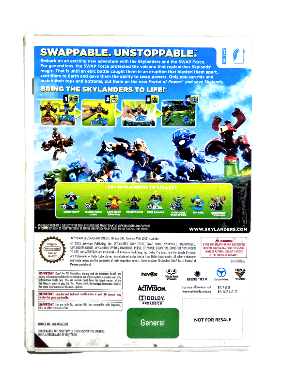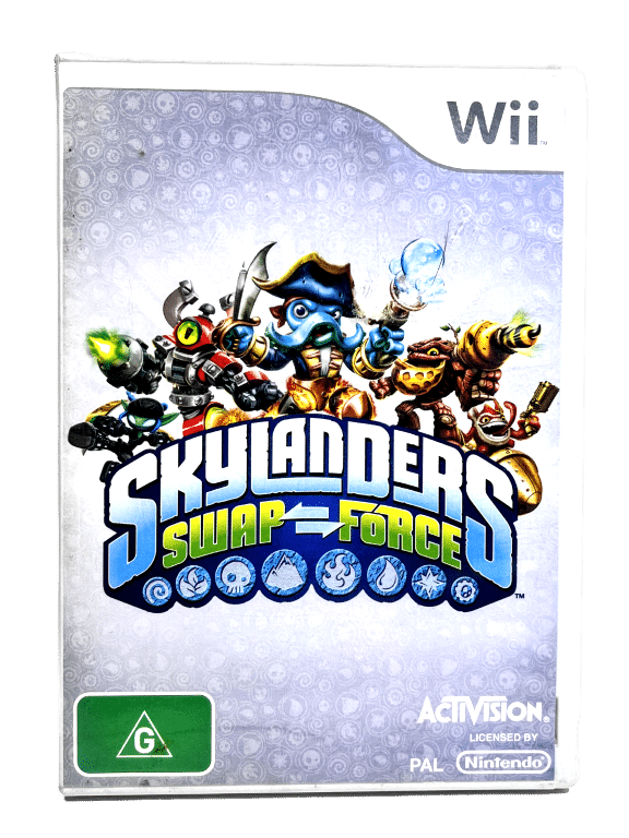 Excellent condition & 100% complete with contents: SKYLANDERS SWAP FORCE / Sky Landers SwapForce for NINTENDO Wii. This preowned game is in superb condition and comes complete with case, cover, Nintendo booklet, Swap Force carded insert, and game disc.