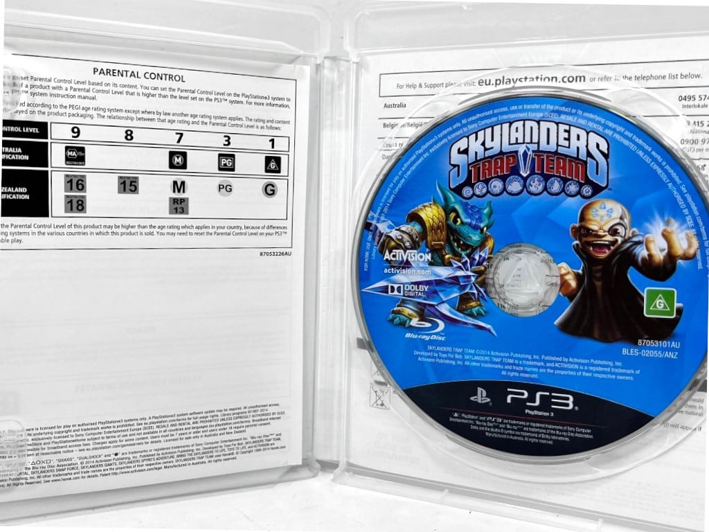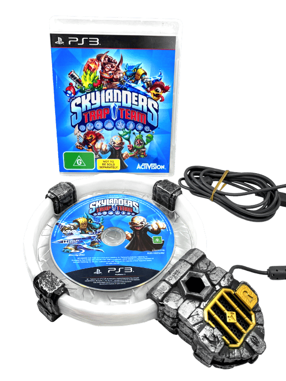 MATCHING BUNDLE: GAME + PORTAL – SKYLANDERS TRAP TEAM for SONY PlayStation 3 / PS3. This preowned matching bundle is in excellent condition. The Skylanders Trap Team game comes complete with case, cover, leaflet, and game disc. Portal also in superb condition.