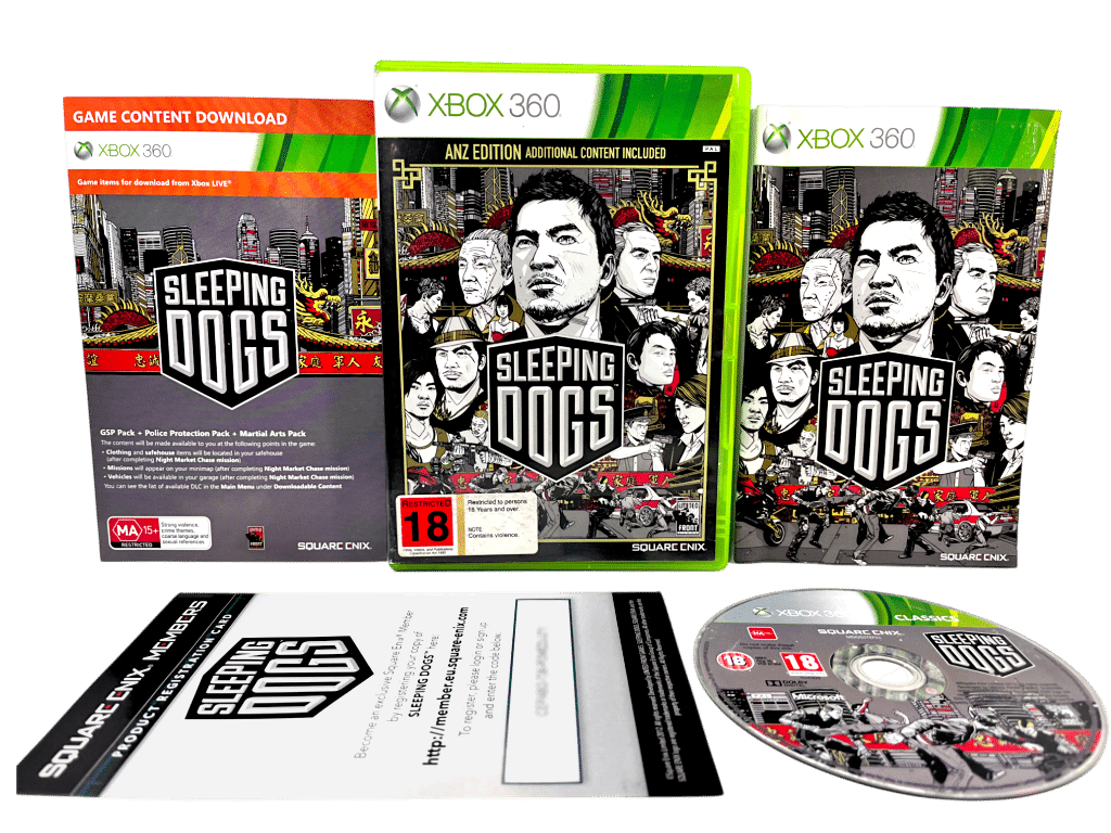 Excellent condition & 100% complete with contents: SLEEPING DOGS the video game (also known as Sleeping Dogs ANZ Edition) for Xbox 360. This preowned game is in superb condition and comes complete with case + cover + manual / booklet + promo cards + game disc.