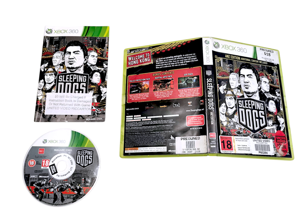 Sleeping Dogs (Xbox 360). This pre-owned Xbox 360 game is in good condition with mild markings and very fine surface scratches only, which are purely cosmetic and do not hinder performance or gameplay in the slightestThis game includes the pictured contents; refer to the photographs.