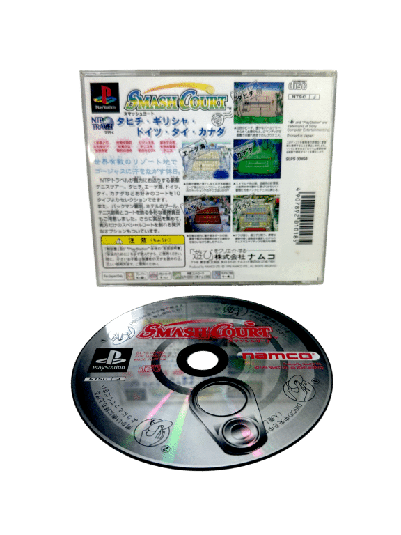 Smash Court (PS1, JPN NTSC-J). This preowned game is in excellent condition with only the mildest of disc surface imperfections which do not hinder performance or gameplay in the slightest. This game comes as pictured. Refer to photographs for included contents