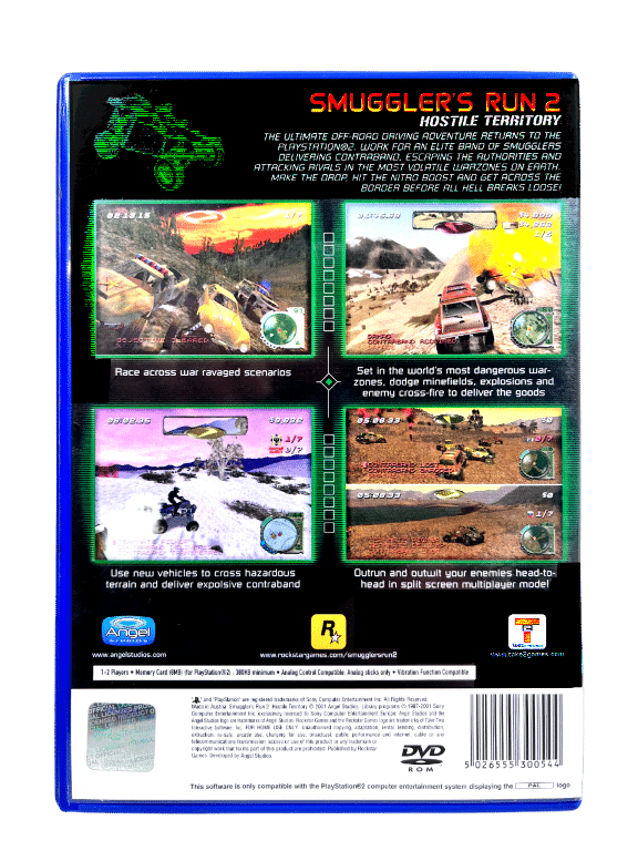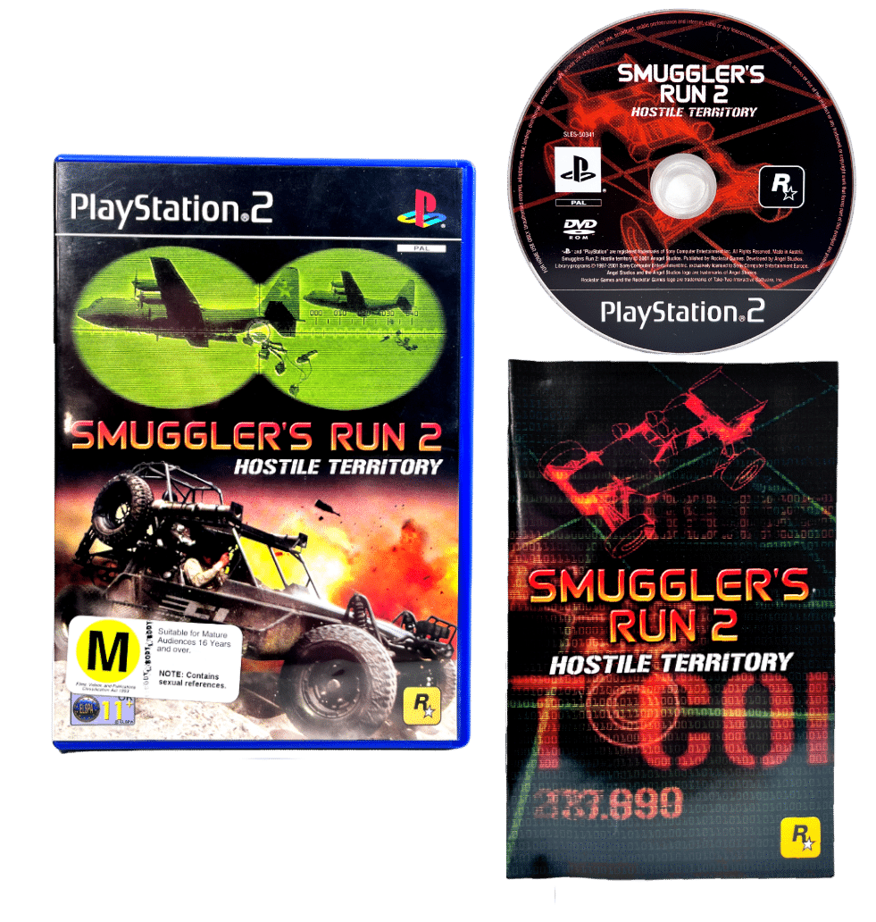 Excellent condition & 100% complete with contents: SMUGGLER’S RUN 2 HOSTILE TERRITORY for SONY PlayStation 2. This preowned game is in superb condition and comes complete with case + cover + manual / booklet + game disc.