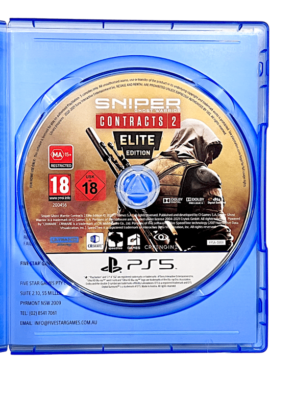 Sniper Contracts 2: Elite Edition – PS5 for SONY PlayStation 5 / PS5. Preowned and in excellent condition – complete with case + cover + GENUINE ELITE EDITION game disc (with bonus content contained on the disc itself).
