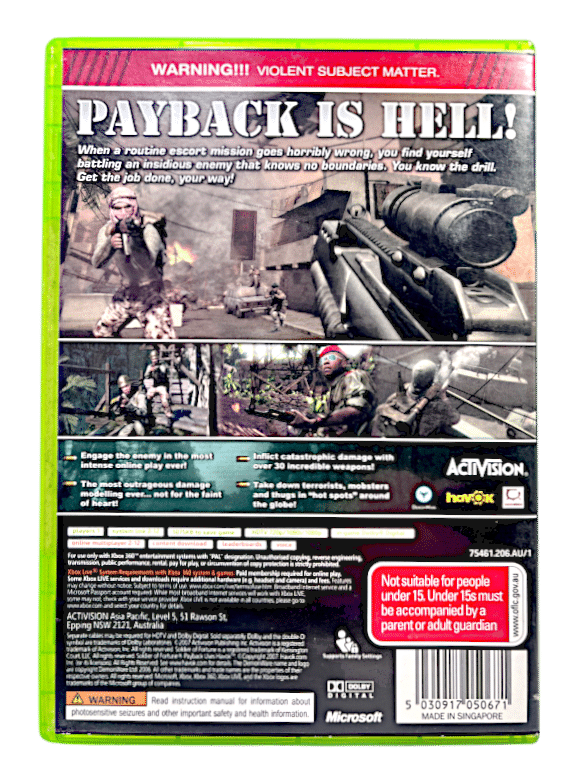 SOLDIER Of FORTUNE: PAYBACK (Xbox 360) *EXCELLENT + COMPLETE*