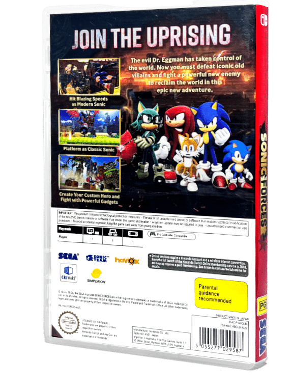 SONIC FORCES for Nintendo Switch. This preowned game is in excellent condition and includes case + cover + game cartridge. Promo card not included.