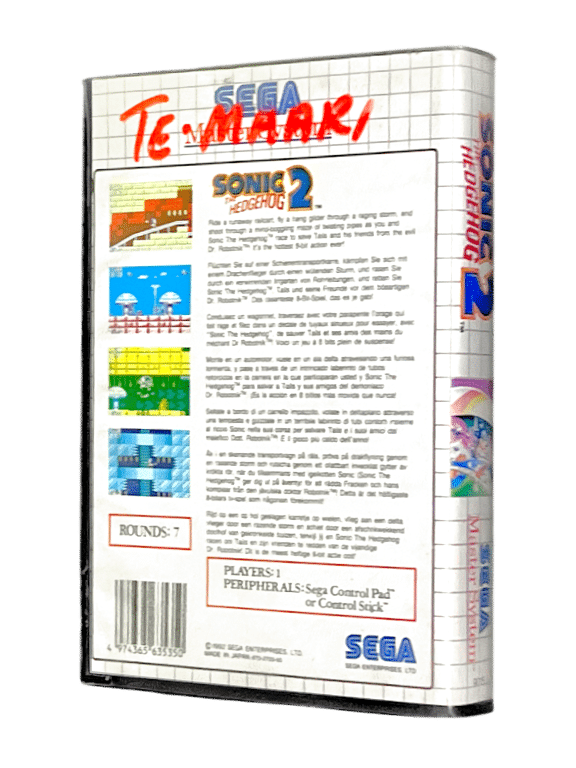 Sonic the Hedgehog 2 (Sega Master System). This preowned genuine Sega Master System game is in good condition and includes each of the cartridge inside its original box with cover. No manual. The previous owner’s name is written on the cartridge, but this could be cleaned off carefully with cleaning products. Refer photographs.