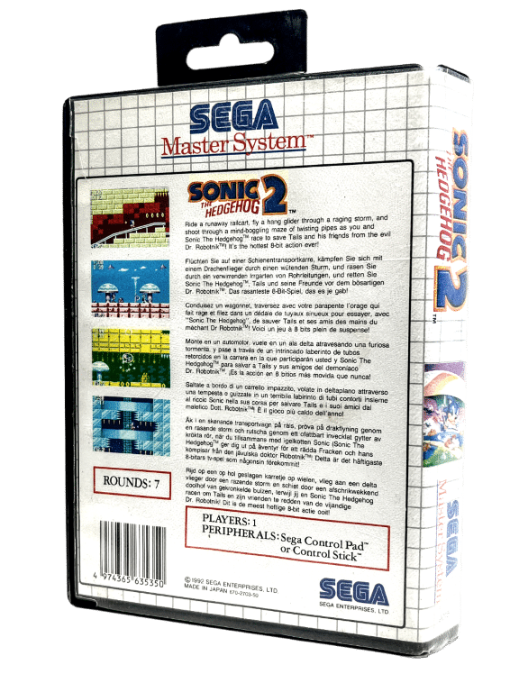 SONIC The Hedgehog 2 for SEGA Master System. This preowned genuine Sega Master System game is in good condition and includes pictured case + cover + game cartridge.