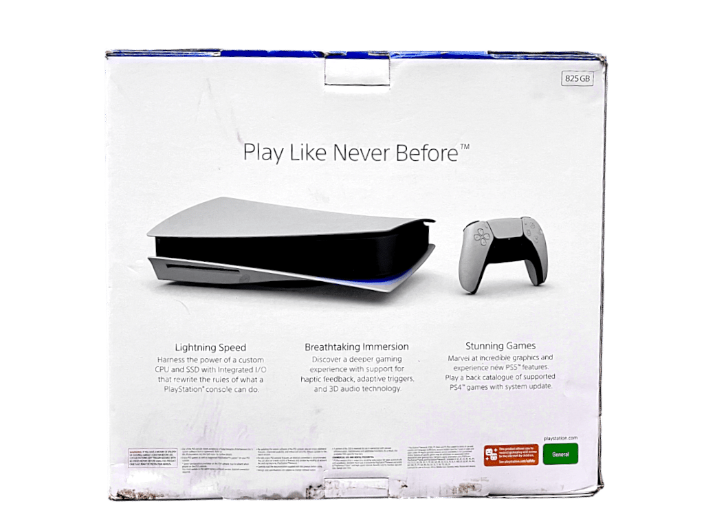 SONY PlayStation 5 – PS5 Console complete with Console STAND + SONY PS5 Controller + HDMI Lead + USB-C Lead + Power Lead ALL INSIDE ORIGINAL BOX. This preowned PlayStation 5 is in Excellent Condition and perfect working order. Console comes complete with matching SONY PS5 Console Stand + Sony PS5 DualSense controller + HDMI lead + USB-C lead + Original Box.