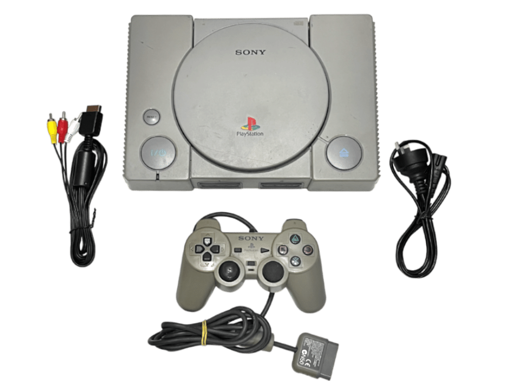 The original Sony PlayStation console that launched the 32-bit gaming era and transformed home gaming forever. This bundle includes the console, controller, power cable, and AV leads, making it ready to play. A cornerstone of any retro collection and an essential system for classic 90s gaming.