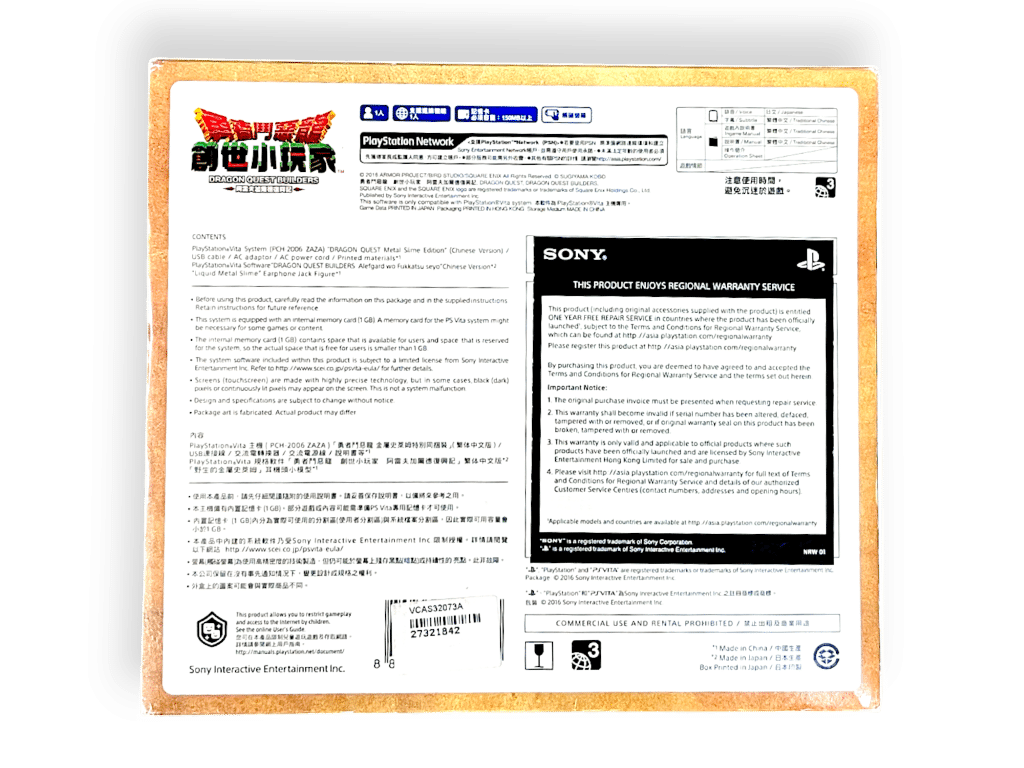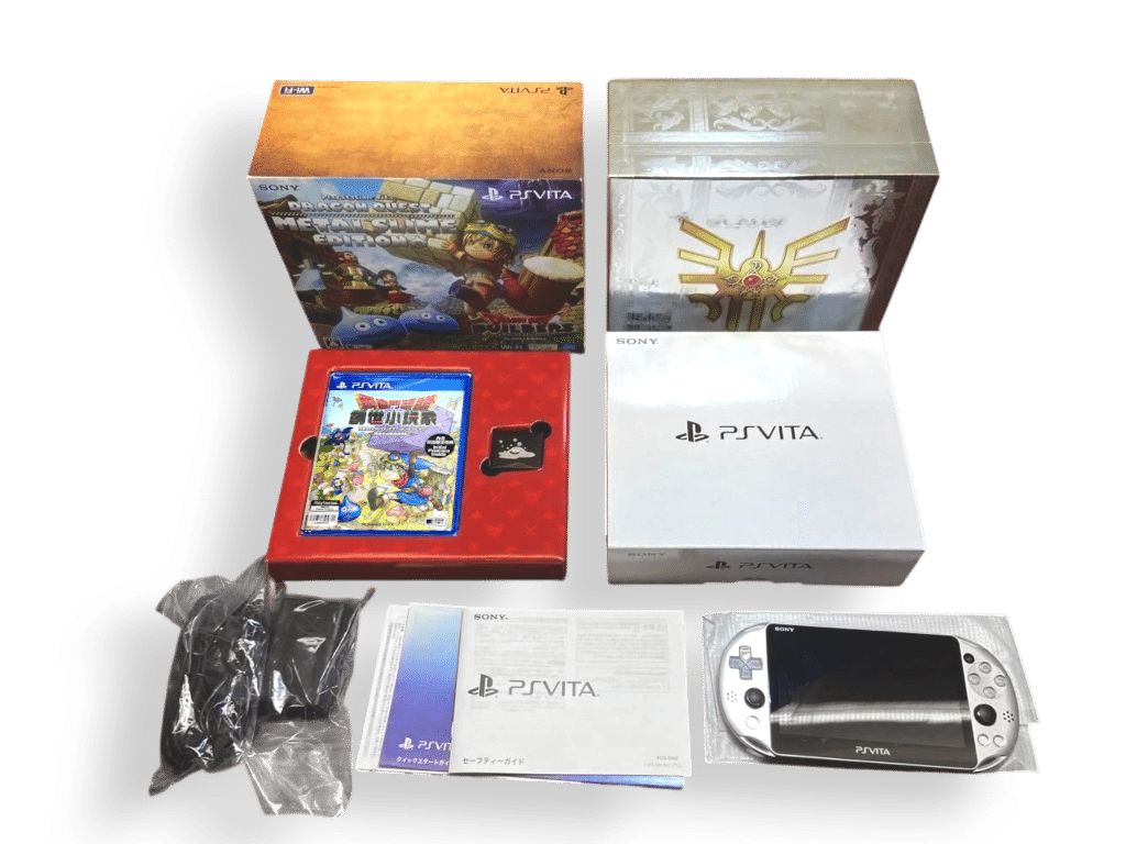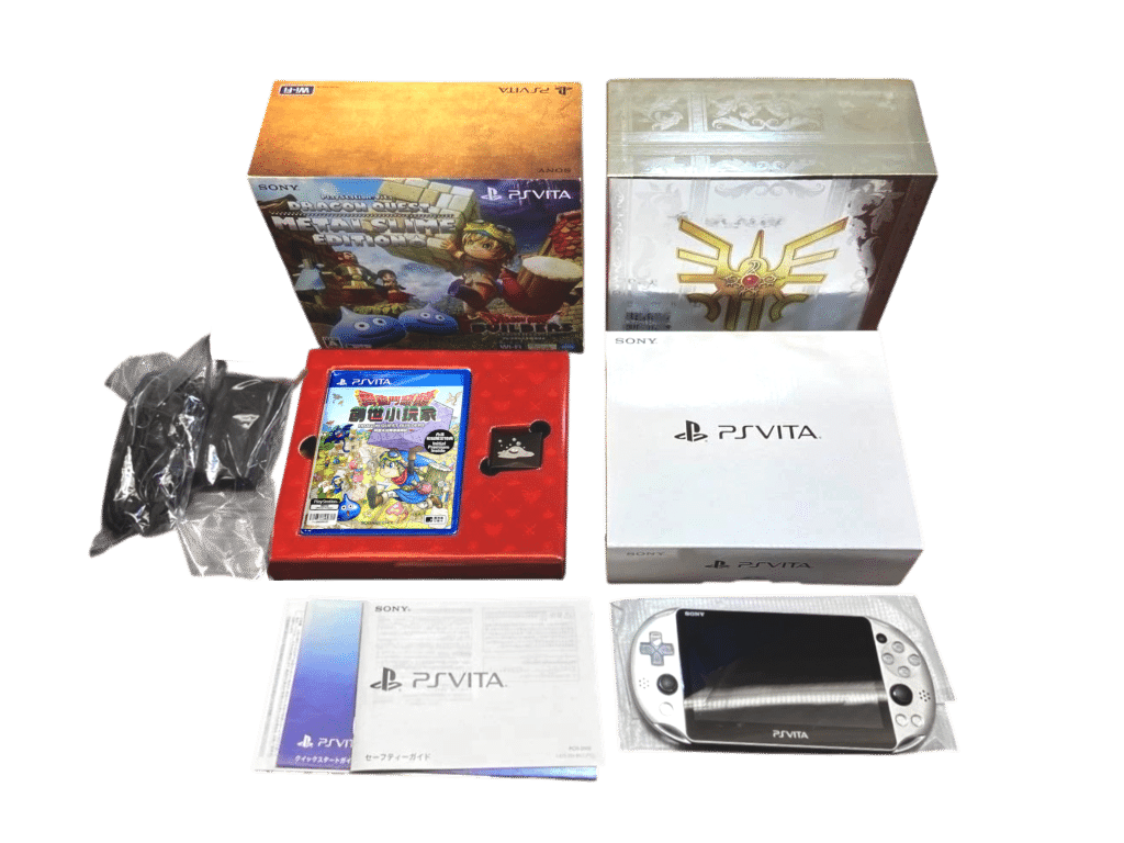 RARE FIND: AUTHENTIC LIMITED RELEASE Sony PS Vita PCHJ-10028 Dragon Quest Metal Slime Edition in Mint Condition and Complete with Box and Contents. Game still BRAND NEW PLASTIC SEALED. This preowned genuine limited edition is in pristine condition, as are the box and contents. The Dragon Quest Builders SONY PS Vita PlayStation Vita game is the JAPANESE EDITION and is still BRAND NEW PLASTIC SEALED. A beautiful collector’s bundle.