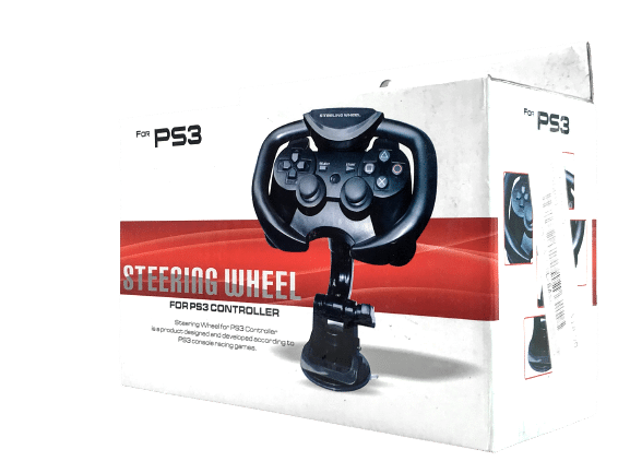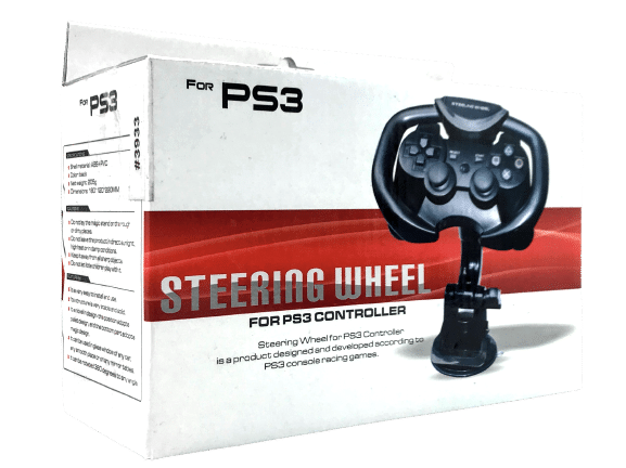 Steering Wheel for SONY PlayStation 3 Racing Games. BRAND NEW IN BOX. Box with some shelf dusting, but brand new and unopened. PS3 controller attaches to steering wheel for racing games.