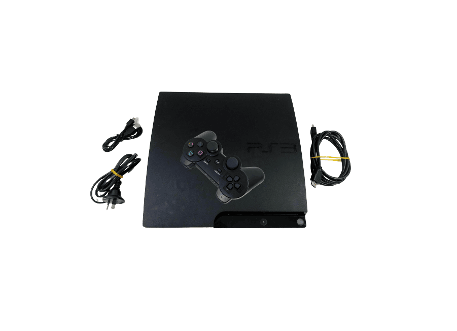 SONY PS3 Slim 500GB Console in excellent condition and perfect working order. This preowned PlayStation 3 console comes complete with two (2) Wireless PS3 Controllers (New – RED + BLUE), HDMI Lead, Power Lead, and USB Charging Lead.