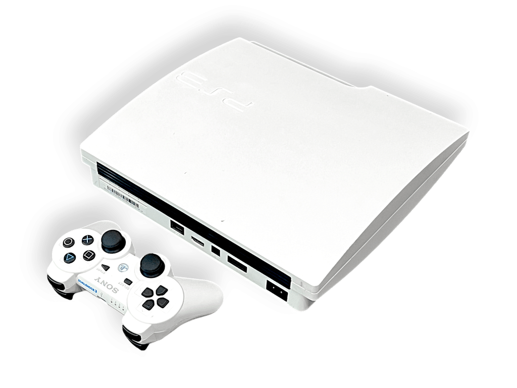 - SONY Slim 320GB Console WHITE (plays BOTH PS3 game discs AND PS1 game discs)