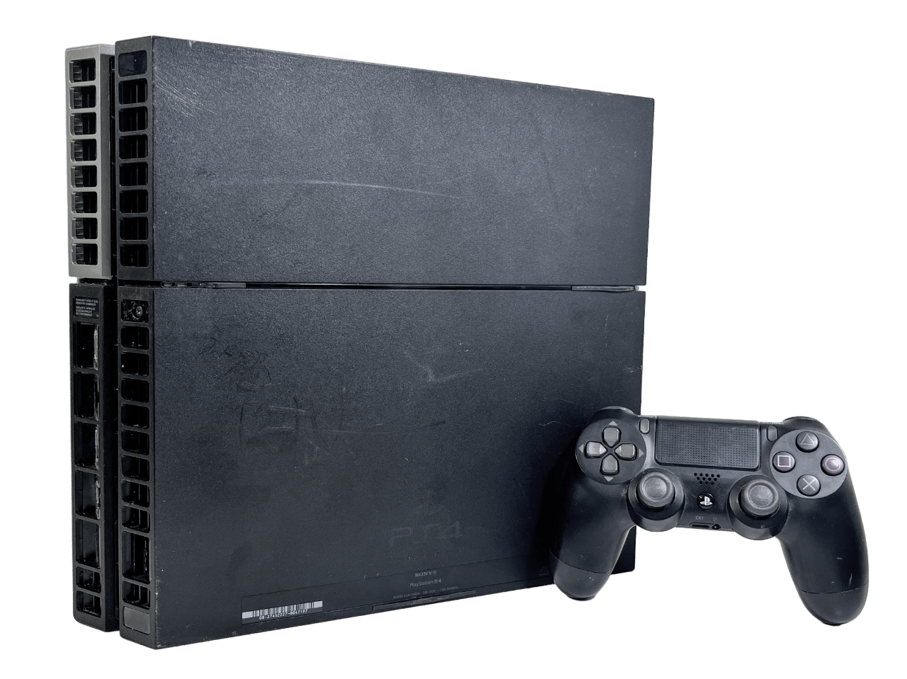 Complete PlayStation 4 Player’s Bundle: SONY PS4 500GB Console + SONY PS4 Controller + HDMI Lead + Power Lead + USB Charging Lead. This preowned PlayStation 4 includes a Genuine SONY PlayStation 4 Wireless Controller in excellent condition. The console is in good working condition with cosmetic imperfections pictured. Console slightly noisy, but nothing that hinders it’s performance in any way.