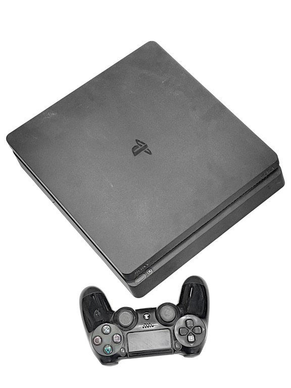 DIGITAL SONY PlayStation 4 / PS4 Slim 500B Console with matching Official SONY PS4 Wireless Controller, Power Lead, HDMI Lead, Micro USB Charging Lead. This preowned console is in good condition and perfect working order AS A DIGITAL CONSOLE (connects to wifi, PlayStation Network PSN, Youtube and all online functionality, but does NOT read game discs). Some surface markings on the top consistent with use, and the controller analog rubbers are worn as pictured, but the controller is perfectly functional.