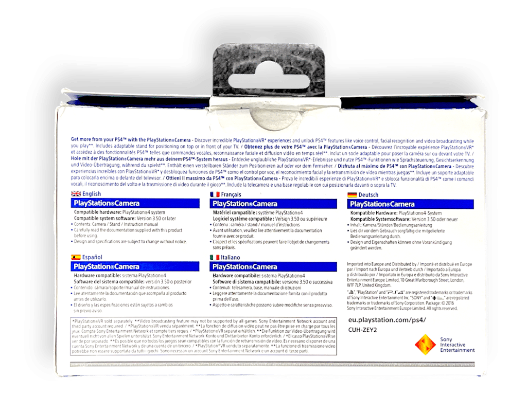 The NEWEST MODEL Official SONY PS4 Camera in Excellent Condition & Complete with Matching Camera Stand – ALL INSIDE ORIGINAL BOX. This preowned genuine SONY PlayStation 4 VR Camera VERSION 2 / PS4 Camera Version2 V2 is in excellent condition and perfect working order as is it’s accompanying official PS4 V2 Camera Stand. Box has been opened with a card tear on the lid, but still presenting well as pictured. Refer photographs.