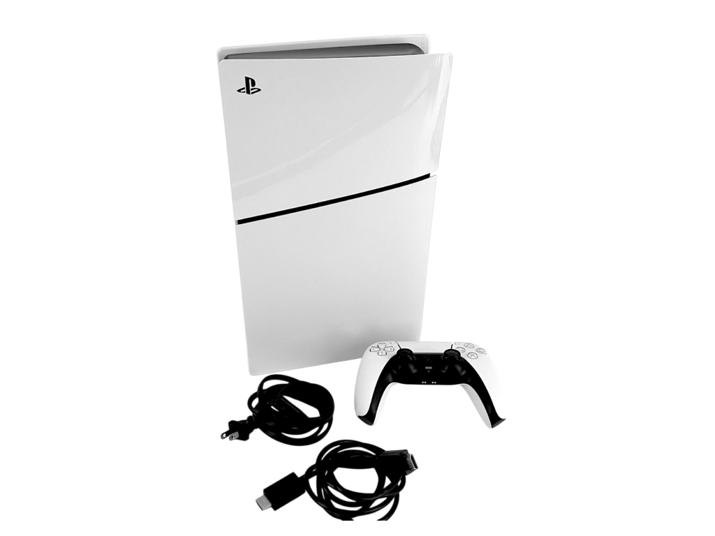 SONY PlayStation 5 SLIM DISC EDITION Console / PS5 (1TB) SLIM DISC DRIVE CONSOLE + CONTROLLER + CABLES. This preowned PlayStation 5 Slim is in excellent condition and perfect working order, complete with matching Official SONY PS5 Controller (SONY PlayStation 5 Dualsense Controller – Wireless BLACK PS5 CONTROLLER instead of WHITE) + HDMI Lead + Power Lead + USB-C Charging Lead.