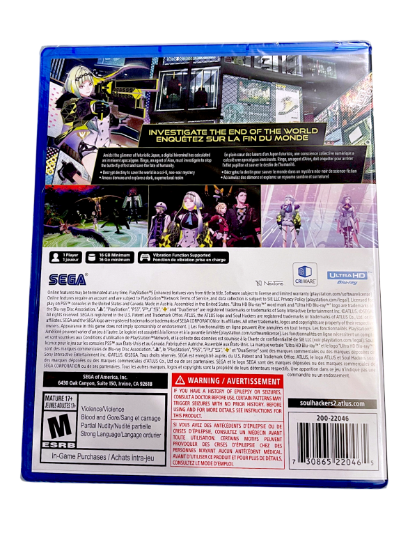 Soul Hackers 2 (PS5). This pre-owned SONY PlayStation 5 game is in mint condition and complete with pictured contents. Refer photographs.