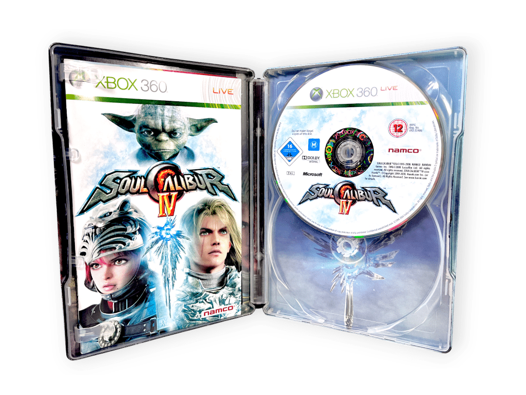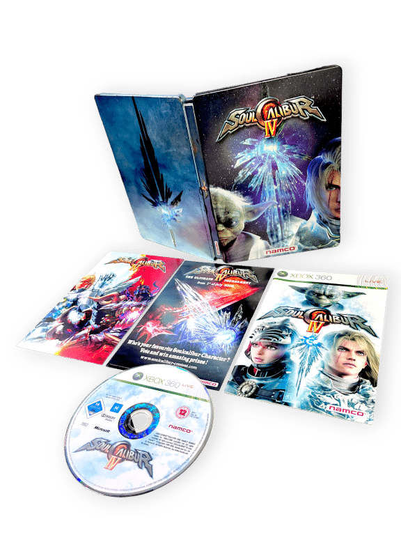 SoulCalibur IV (Xbox 360 Steelbook Edition) Xbox 360. This preowned Genuine Limited Edition Steel Case Collector’s Release is in Excellent Condition, and includes 3 x booklets + game disc inside the striking steel collector’s case. Everything is in superb condition, with even the steel case having only some minor aging patches pictured around the steel finish. Add this to your collection today and display it proudly! Refer images.