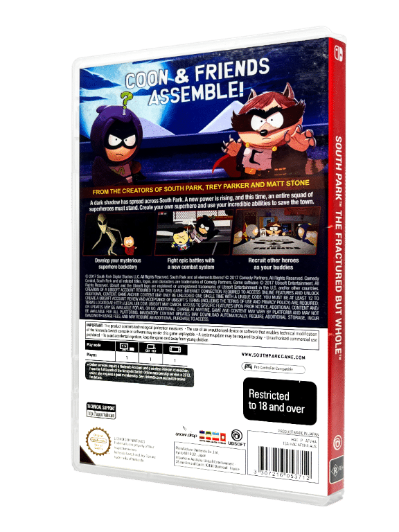 Excellent condition & 100% complete with contents: SOUTH PARK THE FRACTURED BUT WHOLE for Nintendo Switch. This preowned game is in superb condition and includes case, cover, carded insert, and game cartridge. Box Dimensions (mm): 105 x 170 x 10.