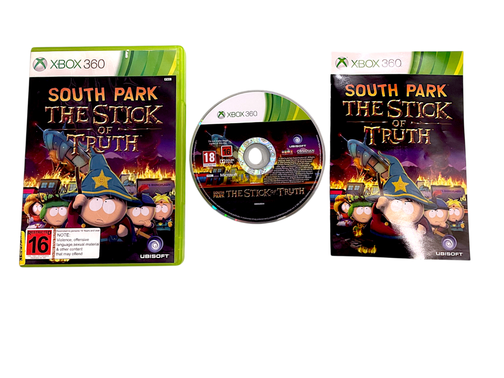 South Park: The Stick of Truth (Xbox 360). This pre-owned game is in good condition with mild disc surface imperfections only which do not hinder gameplay or performance in any way. This game includes the pictured case and contents. Refer to the photographs.