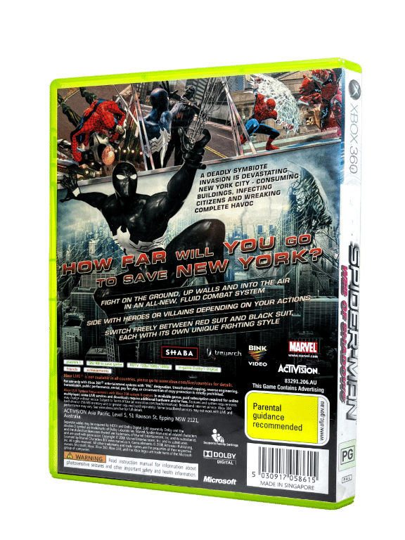 MARVEL’S SPIDER-MAN WEB OF SHADOWS for Xbox 360. This preowned game is in excellent condition and includes case + cover + game disc. No manual included in this listing.