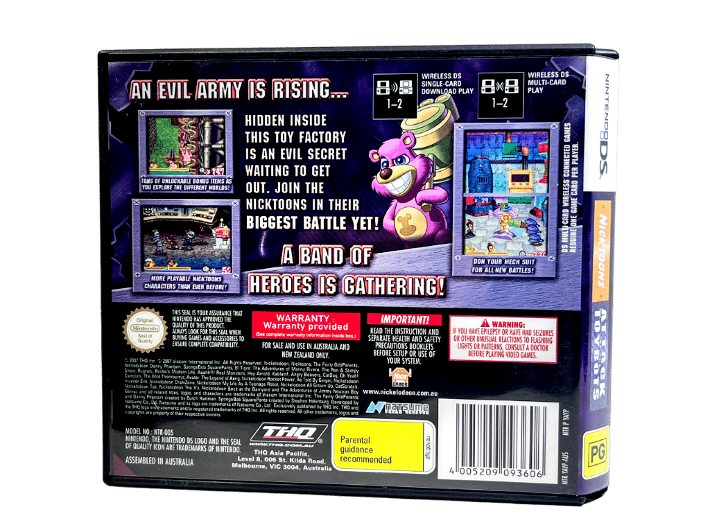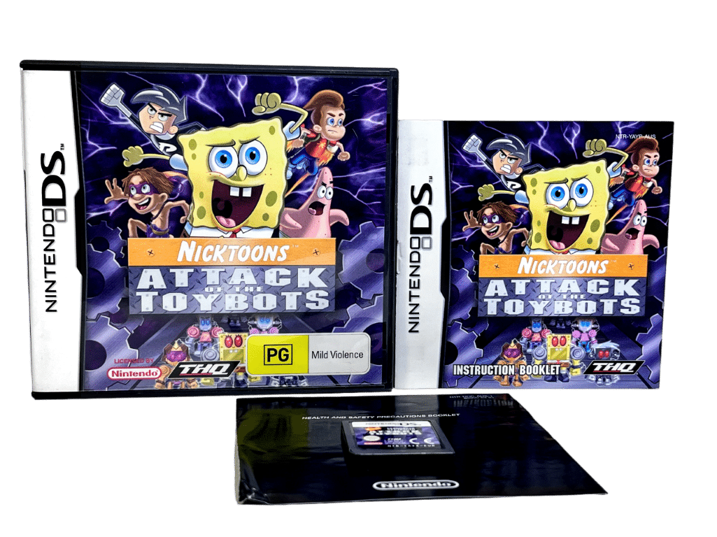 Excellent Condition: Spongbob Squarepants NICKTOONS ATTACK OF THE TOYBOTS for Nintendo DS. This preowned game is in superb condition and comes complete with case + cover + manual / booklet + game cartridge.