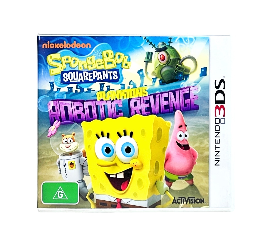 Excellent condition & 100% complete with contents: SpongeBob SquarePants: Plankton’s Robotic Revenge for Nintendo 3DS. This preowned game is in superb condition and comes complete with case, cover, carded insert, and game cartridge.