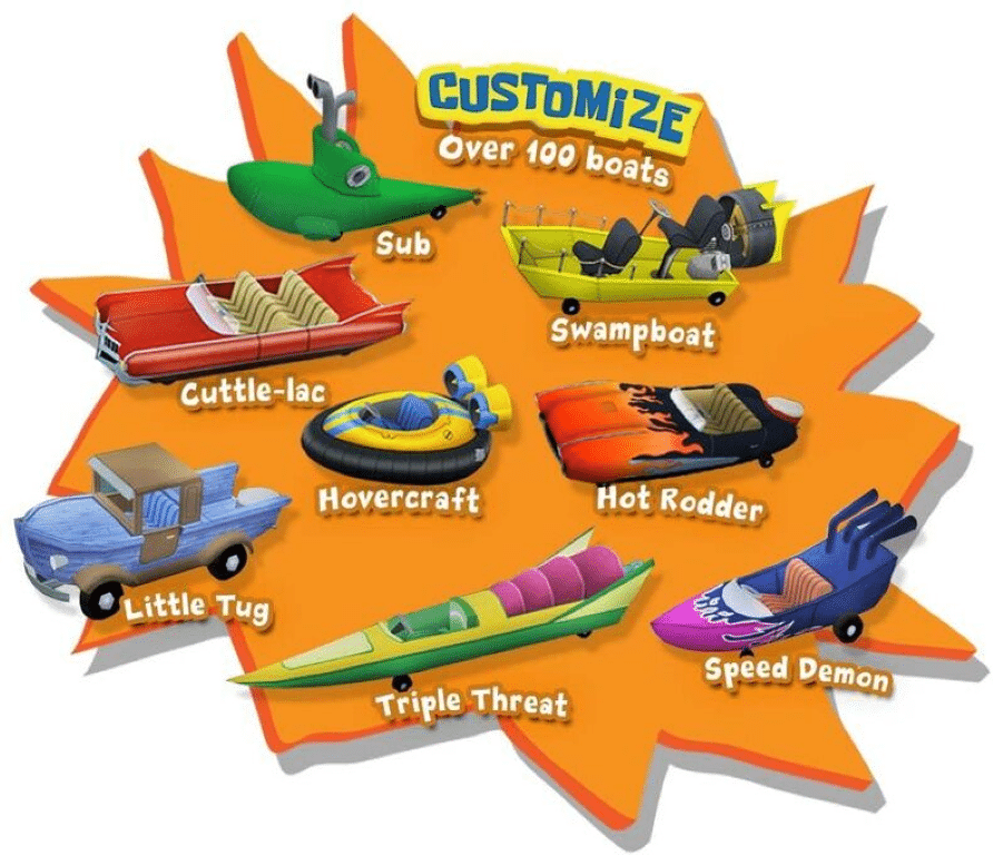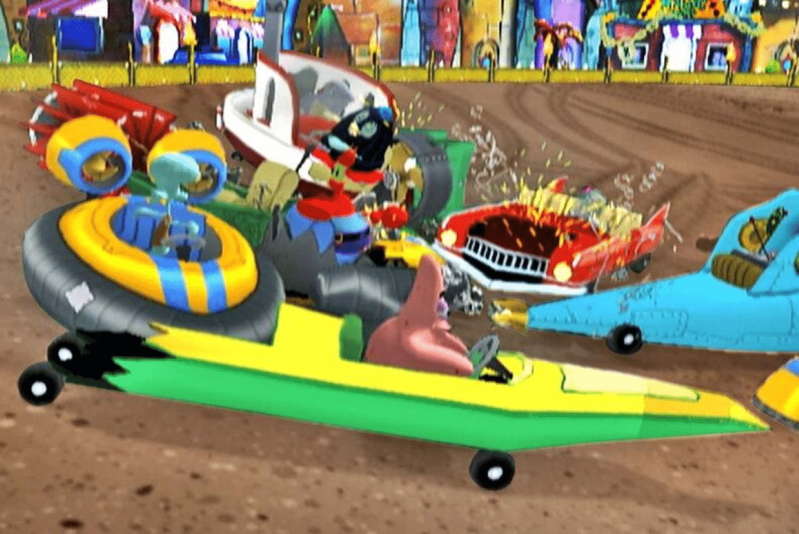 Crash ‘N Bash with your favorite SpongeBob character in this exhilarating, fast-paced demolition derby style party game full of excitement for the whole family. Drive around in cars…er, boats competing within wacky arenas throughout Bikini Bottom to ultimately be the last boat standing!