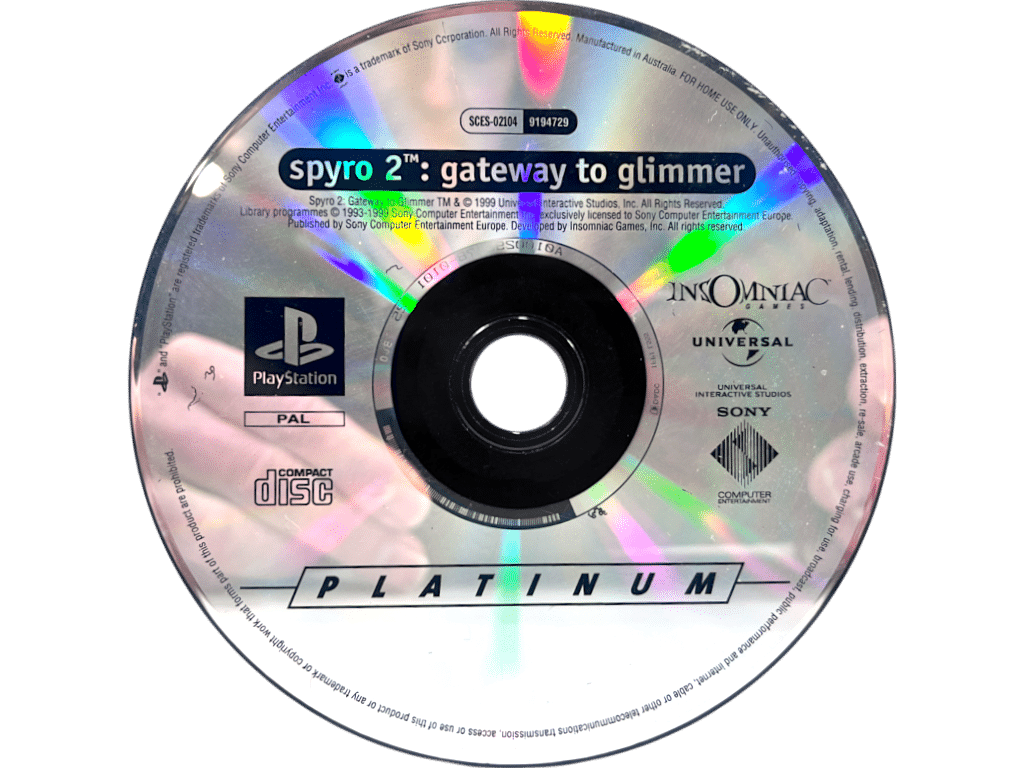 SPYRO The Dragon 2 Gateway to Glimmer for SONY PlayStation 1 / PS1. This preowned game disc is in excellent condition and comes inside an empty blank case. Please note that the original case is NOT included.