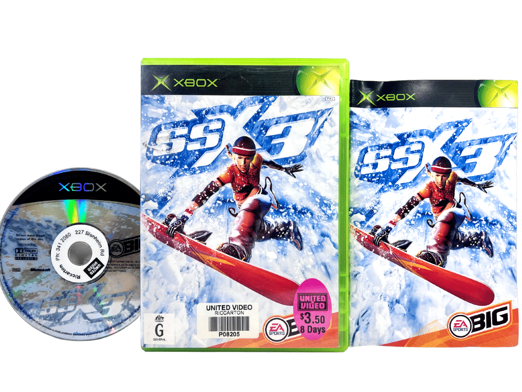 100% Complete with Contents: SSX 3 for Original XBox. This preowned game comes complete with pictured case, cover, manual / booklet, and game disc. Ex-rental game. The disc has visible light scratches, so will need resurfacing before the game is playable.