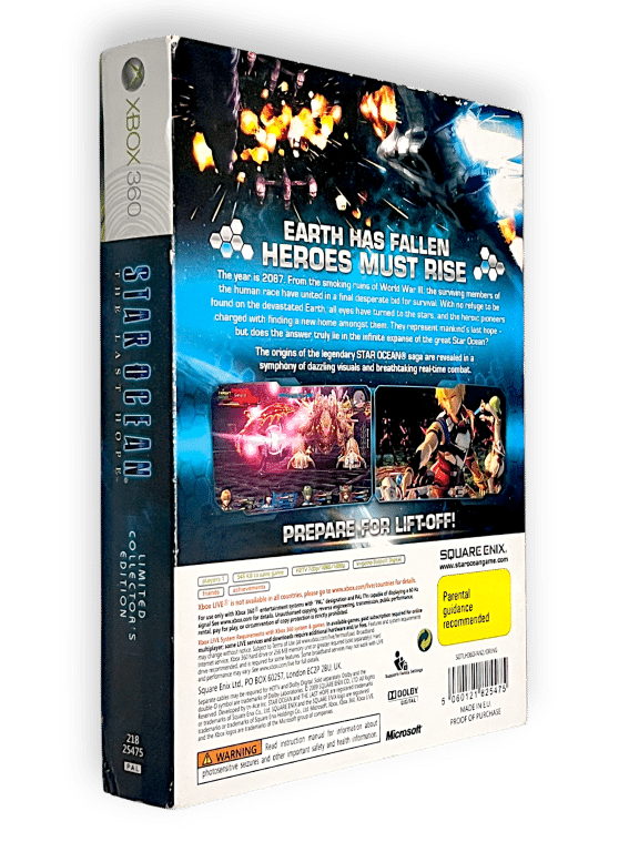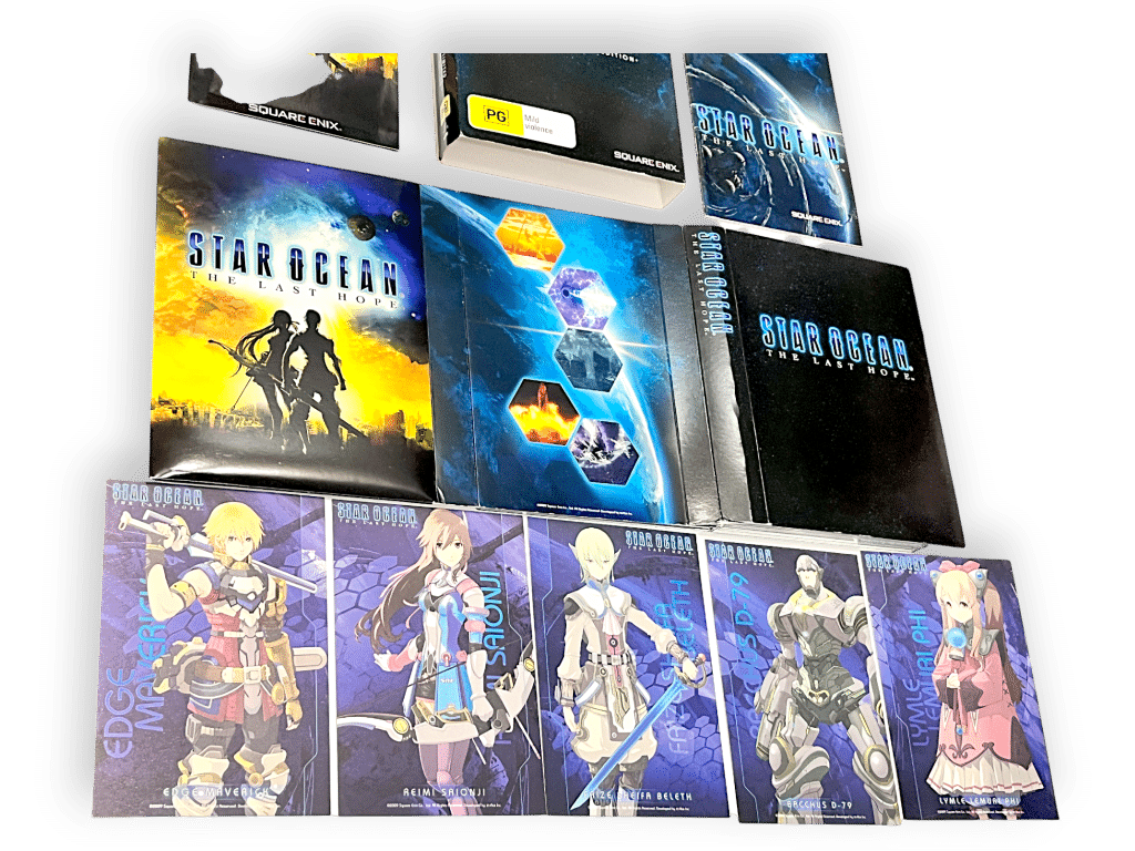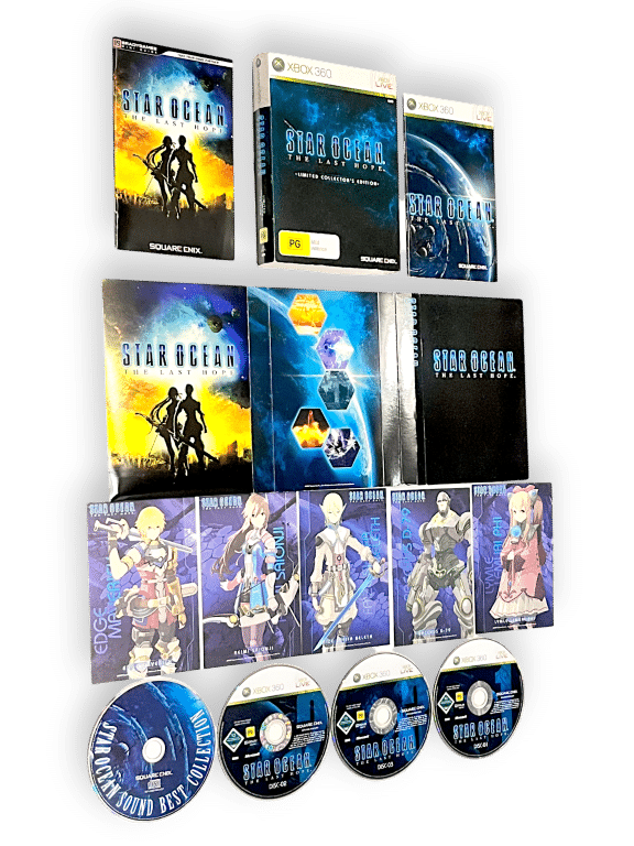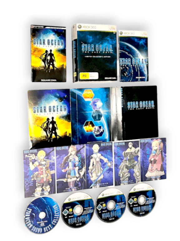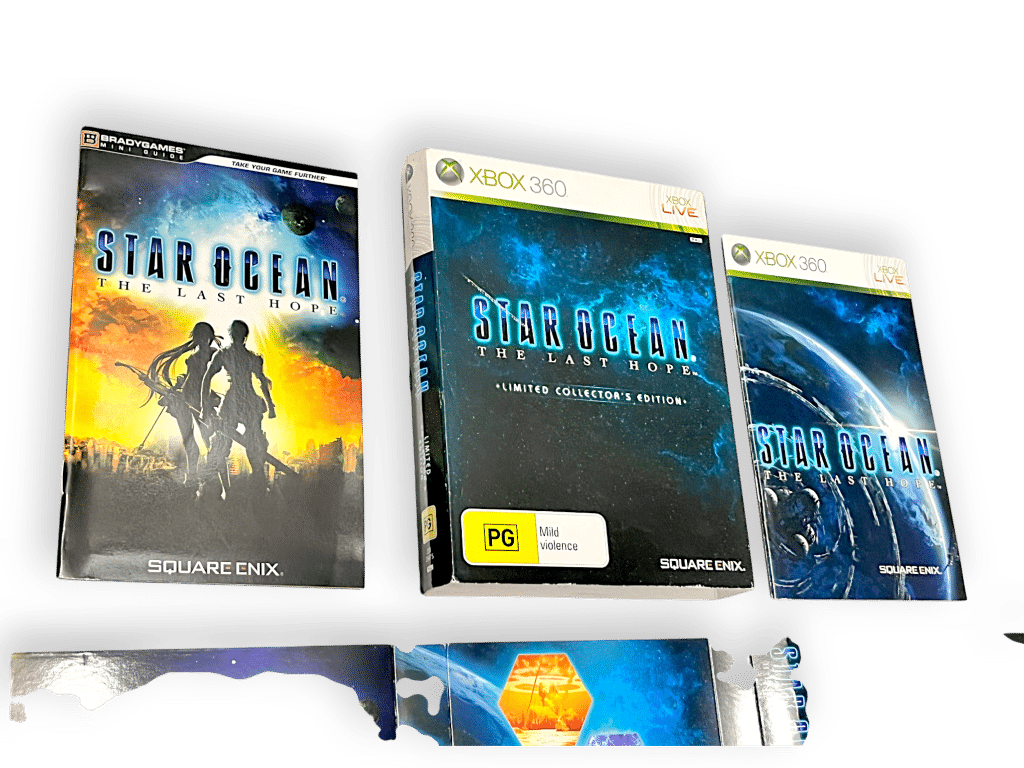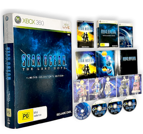 Star Ocean: The Last Hope – Limited Collector’s Edition (Xbox 360) *BIG BOX COLLECTOR’S*. This pre-owned authentic limited release big box collector’s edition contains all inner contents in mint condition as pictured. A very tidy and complete collector’s box set. Refer photographs.