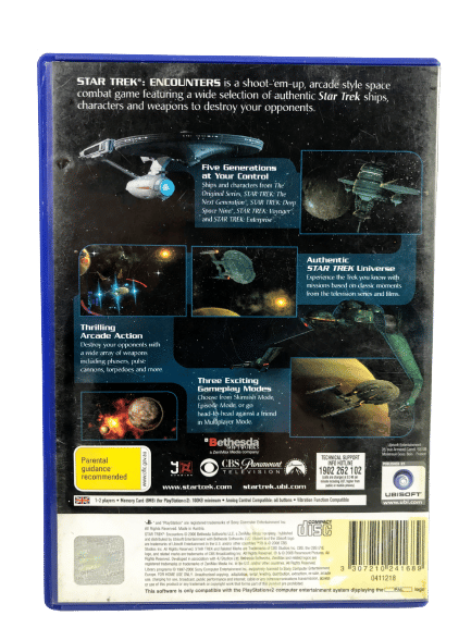 Excellent Condition & 100% complete with contents: STAR TREK ENCOUNTERS for SONY PlayStation 2 / PS2. This preowned game comes complete with case, cover, manual / booklet, and game disc.