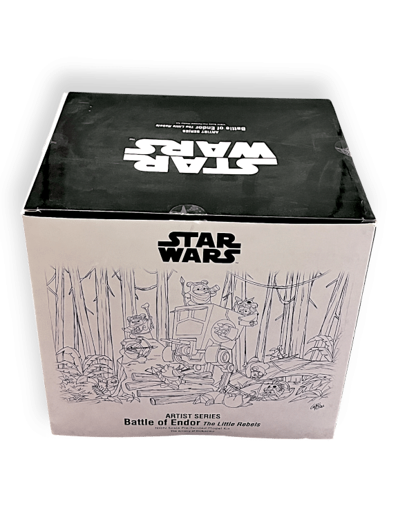 Star Wars Artist Series: Battle of Endor: The Little Rebels Model Kit BOXED COMPLETE. This pre-owned Limited Release Star Wars Diorama Collectible Statue is in excellent condition. The only blemish I could find anywhere was on the front of the guns where both the tiny barrel tips have been snapped off. Aside from that, superlative in a lovely collector’s bundle and a large item that features a high price on eBay. Refer photographs.