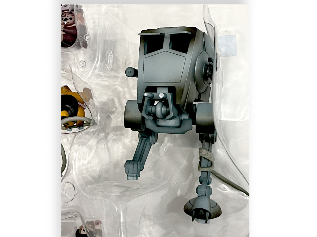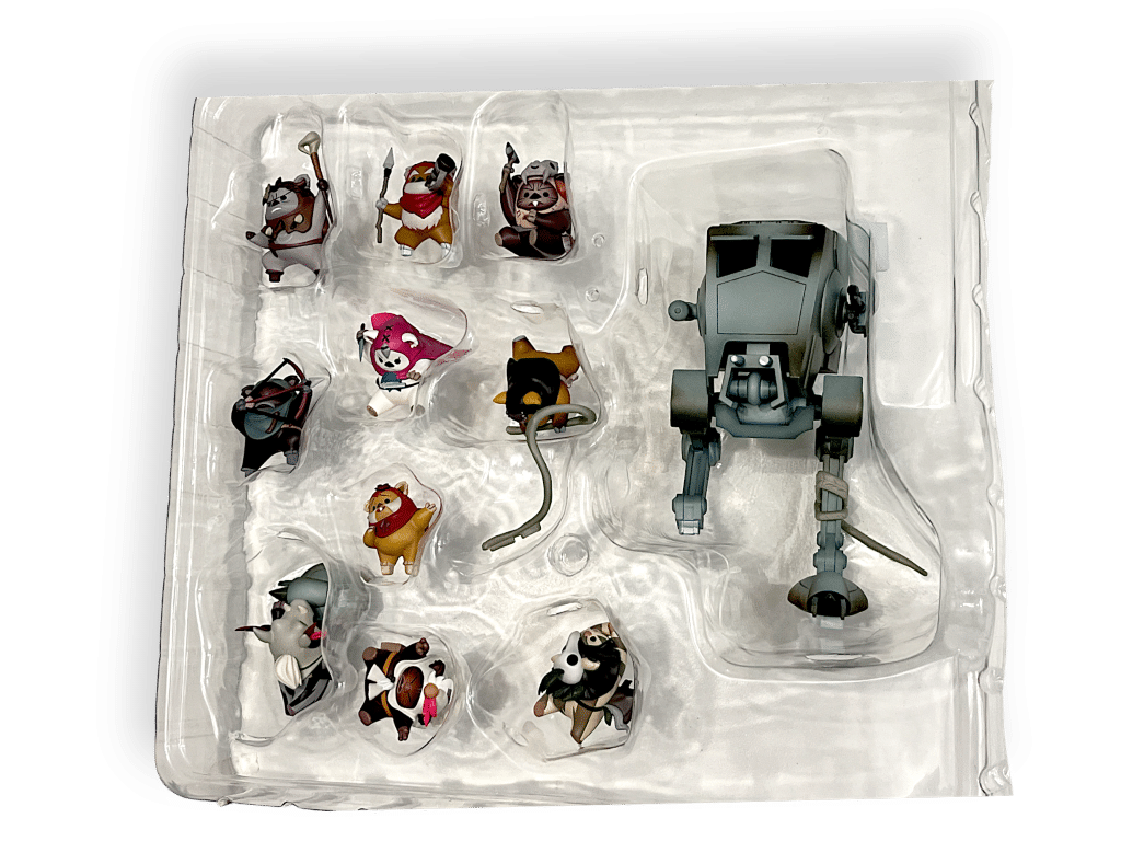 A stylised Artist Series model kit depicting the Battle of Endor with a playful illustrated twist. Featuring Ewoks and an AT-ST in a storybook-inspired scene, this non-scale pre-painted kit is designed for display rather than play. A unique Star Wars collectible that blends art, character, and diorama-style presentation.
