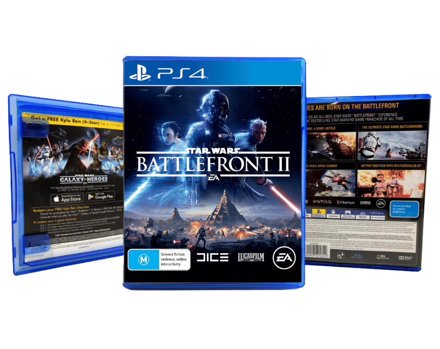Excellent condition & 100% complete with contents: STAR WARS Battlefront 2 (Battlefront II) for SONY PlayStation 4 / PS4. This preowned game is in superb condition and includes case + cover + promo cards + game disc. Case has mild laminate plastic wear, but this is purely cosmetic, and the contents inside are fantastic.