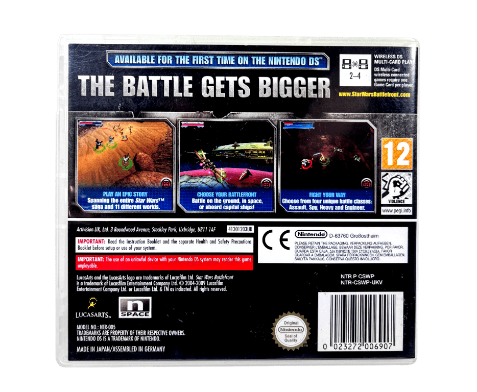 Star Wars Battlefront is back and bigger than ever on the PSP (PlayStation Portable) system and Nintendo DS! Releasing this Fall, Star Wars Battlefront: Elite Squadron is the deepest and most action-packed Star Wars Battlefront game ever. Experience battlefronts that span ground, space and capital starships, a robust original storyline and expanded gameplay features that deliver endless replayability. Fight on an expanded battlefront that spans multiple layers of action. Start the fight on foot, commandeer a vehicle and dogfight in space, and land your craft on and fight in capital starships. Your actions in each area directly affect the outcome on others. Take the lead role in an engrossing, never-before-told storyline that puts you in the middle of the action of the most memorable battles spanning the entire Star Wars saga and beyond. Massive amounts of replay value and customization ensure that every battle you take part in is unique and different!