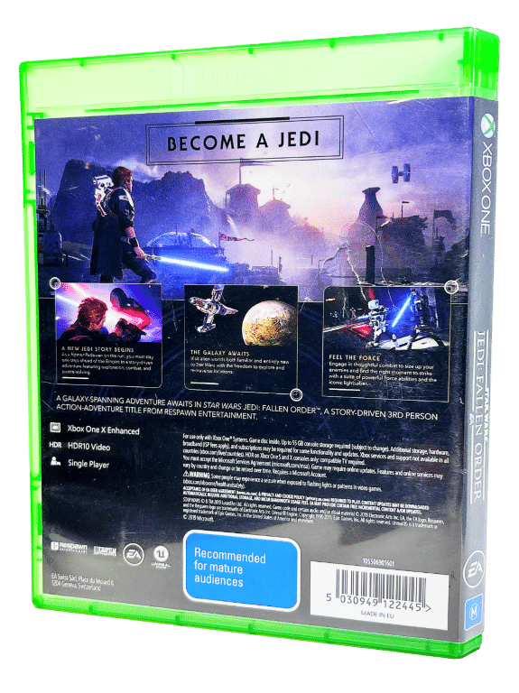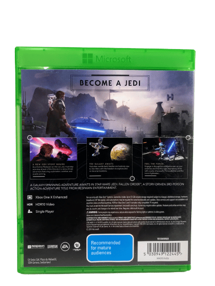 STAR WARS JEDI FALLEN ORDER for XBox One. This preowned game is in pristine condition and includes case, cover, and game disc. Promo card not included.