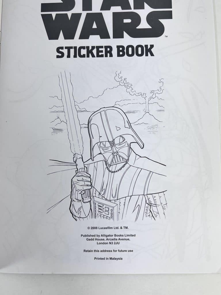 STAR WARS Sticker Book. This preowned book is in good condition as pictured and includes activity pages – still unmarked, but DOES NOT INCLUDE STICKERS. Just the activity pages inside the book – unmarked.