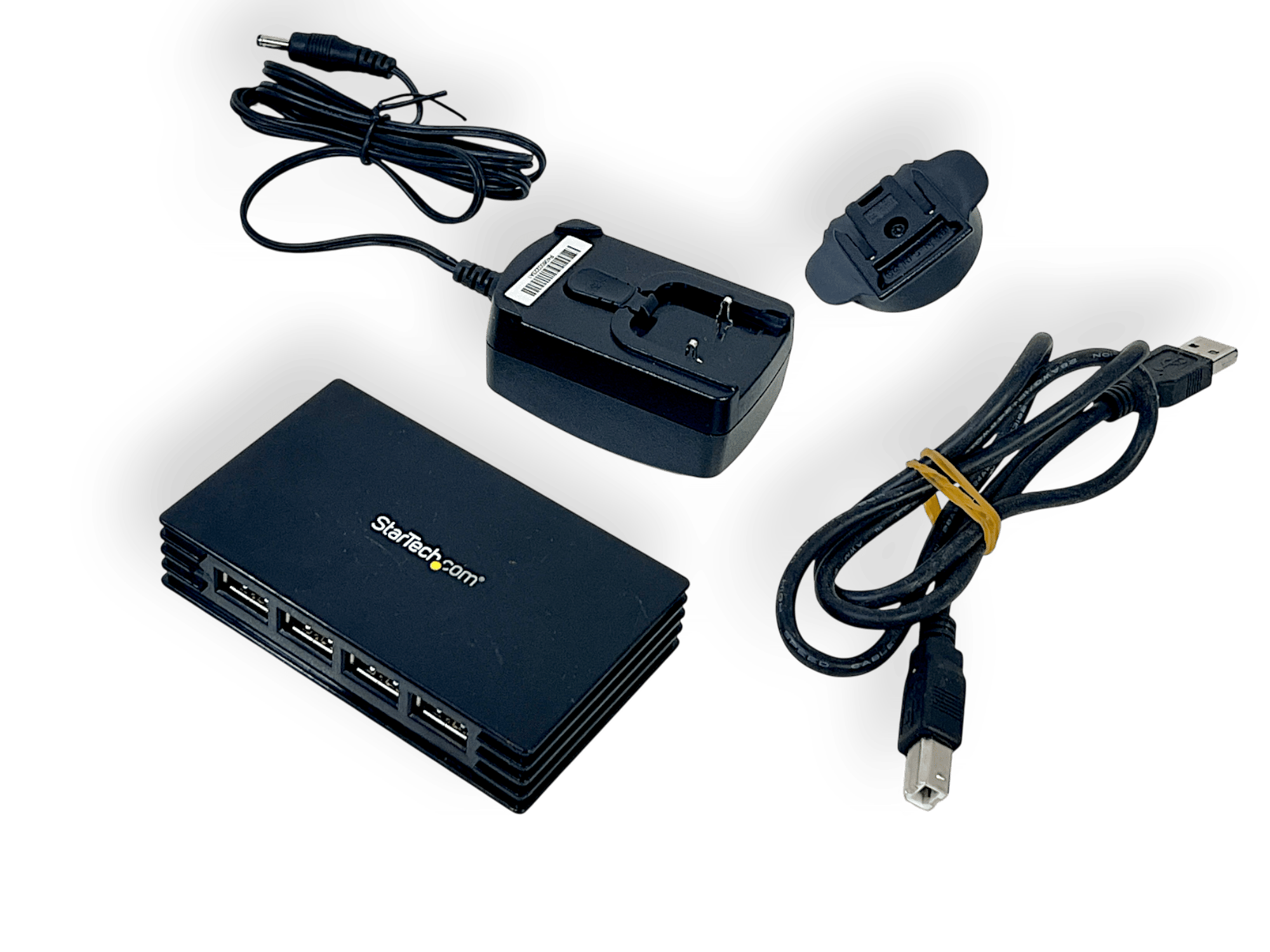 StarTech 4-Port USB Hub with Power Adapter. This pre-owned bundle is in good condition, as pictured.