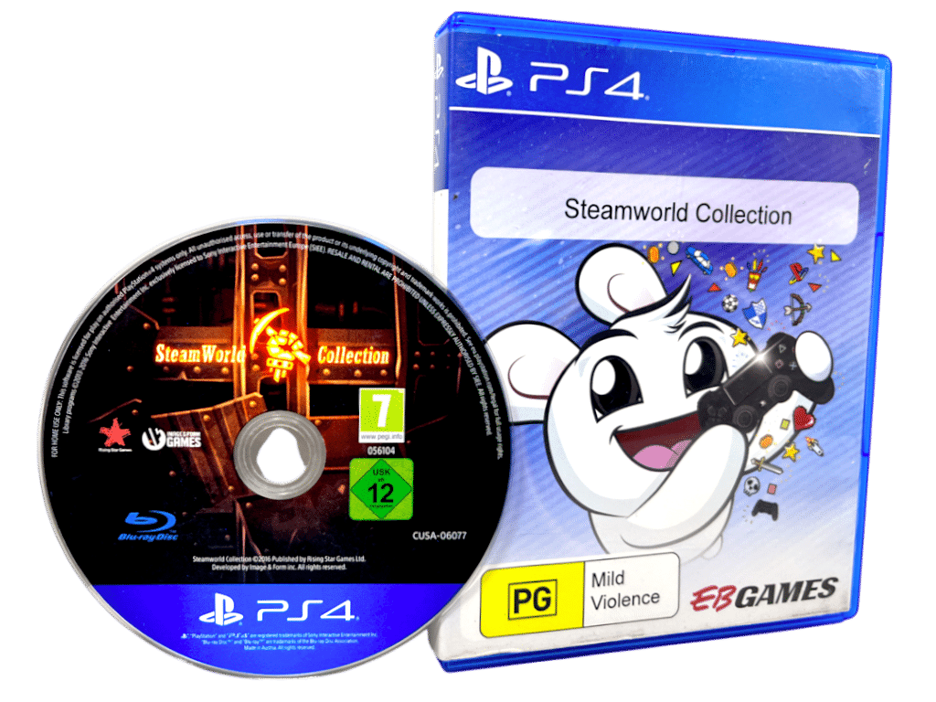 The Steamworld Collection for SONY PlayStation 4 / PS4. This preowned game disc is in excellent condition and comes inside case with EB Games cover (NOT original cover art).